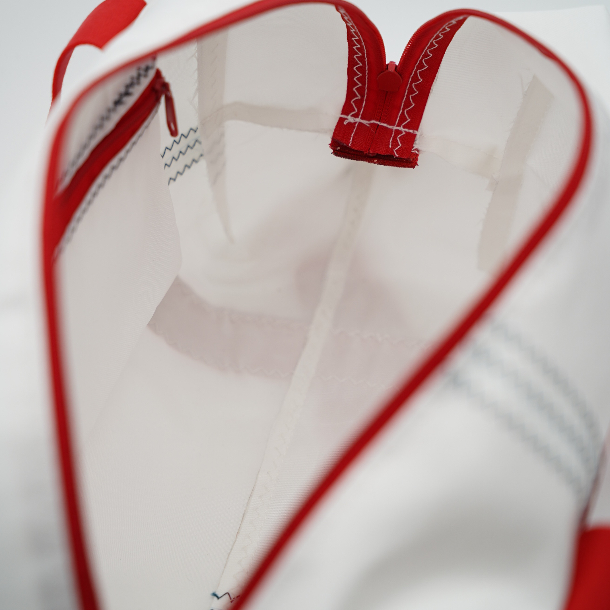 Jedes Segel, das wir wiederverwenden, wird gründlich gereinigt. Die Produkte von UpSail sind einzigartige Unikate, die ausschließlich aus recycelten Segeln hergestellt werden. Spuren der Beanspruchung des Segels, wie die natürliche Alterung durch UV-Strahlung der Sonne, die Einwirkung der Ozeangischt und die Reibung an dem Schiffsrumpf, sind keine Mängel, sondern vielmehr Teil der Geschichte des Produkts.